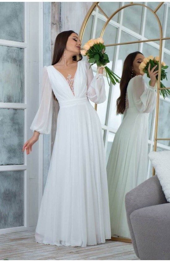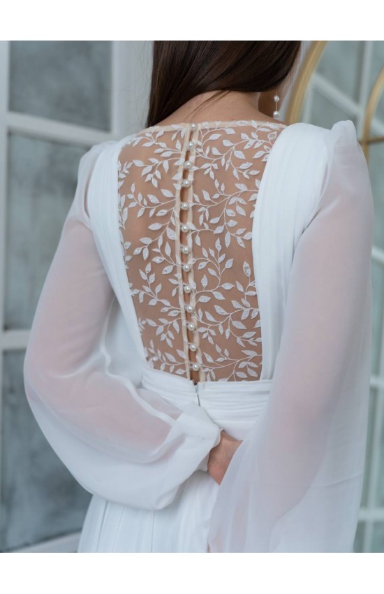 Шикарное шифоновое свадебное платье со вставками из блестящих веточек на груди и по спинке.Юбка полностью клеш, подкладка на всю длину