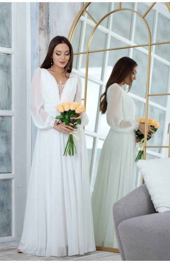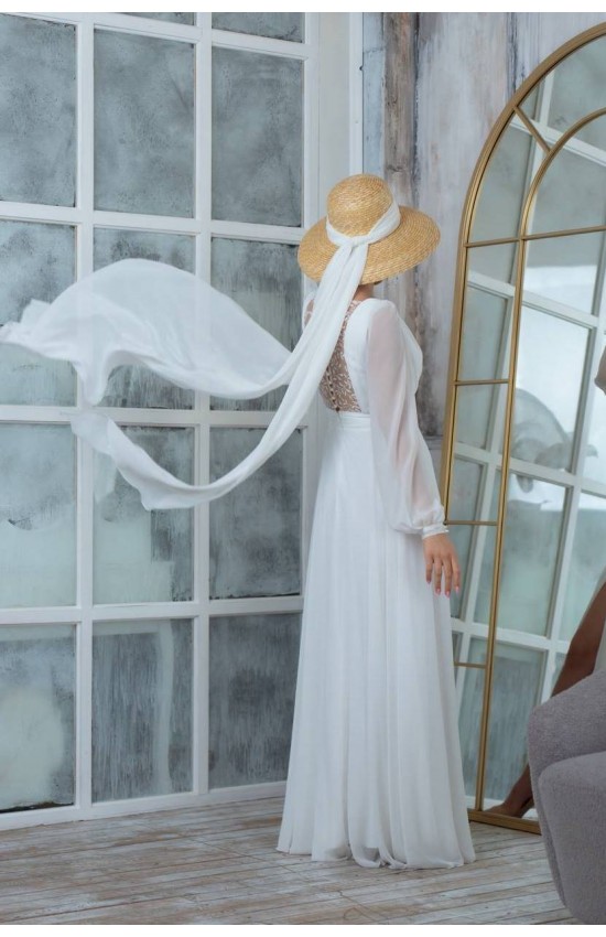 Нежное платье ЛЕБЕДУШКА 0-36 белое шифон с от..
