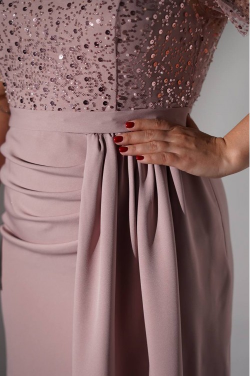 Женское нарядное платье из ткани марьяно с отделкой лифа из пайеток. Красивая посадка, силуэт рыбка. Рукава до локтя.