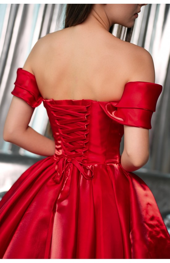 Короткое платье 0-150/2 красное из ткани органза "зеркало". Корсет регулируемый. Платье-трансформер. Лямки переходят в складку на корсете и отстегиваются полностью. Можно снять как одну лямку, получив при этом асимметрию, так и сразу две. Пышность юбке добавляет вшитая нижняя юбка из фатина. Есть подкладка, вшитые чашки для груди.
