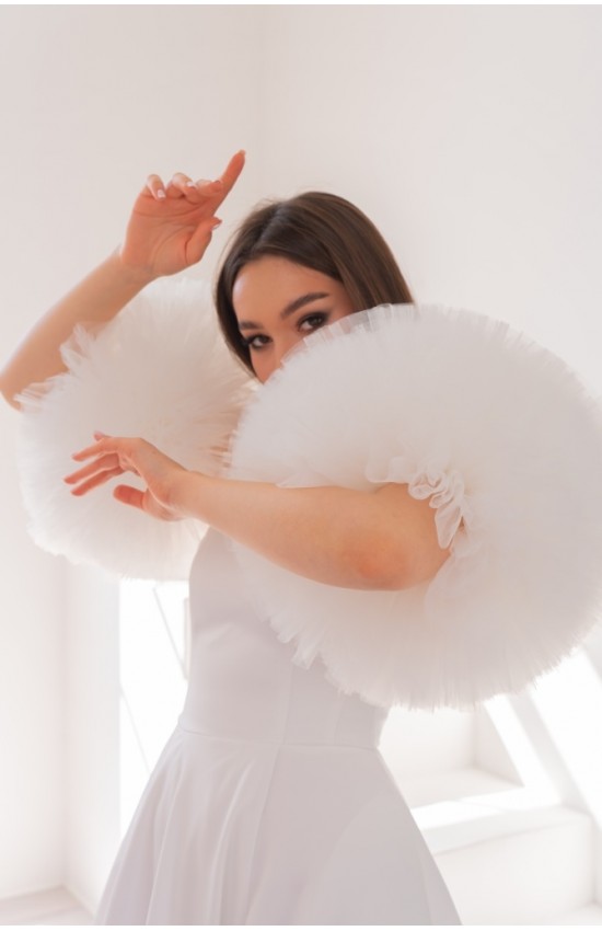 Красивые густые пушистые рукава-помпоны из евро-фатина. Подойдут к платью-бюстье или к платью с бретельками. Придают оригинальный вид. Продаются отдельно от платьев по одному.