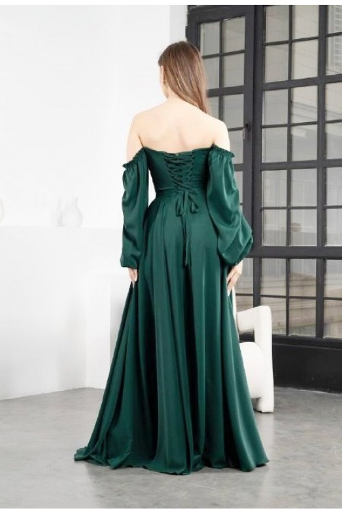 Шикарное платье в пол с разрезом по ножке и расклешенной юбкой в пол. Ткань дубайский шелк. Мягкий корсет на шнуровке по спине.