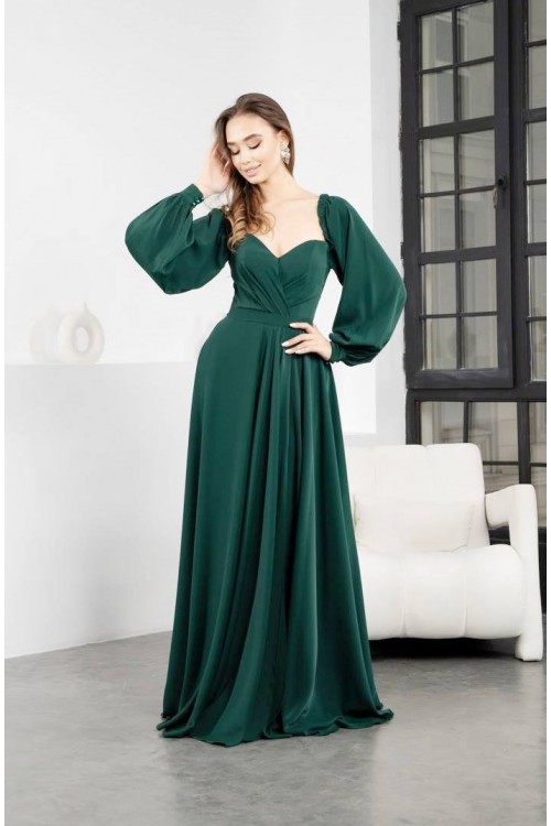 Платье на запах. Длина макси. Пышные длинные рукава из органзы, украшенные жемчужинами и крапинками ..