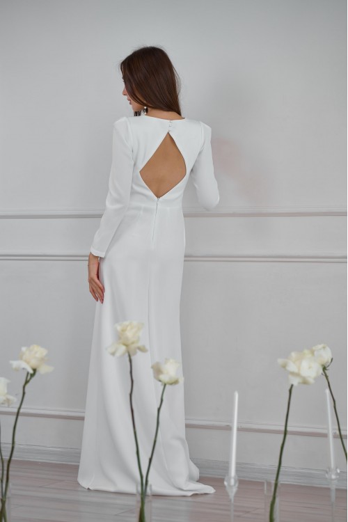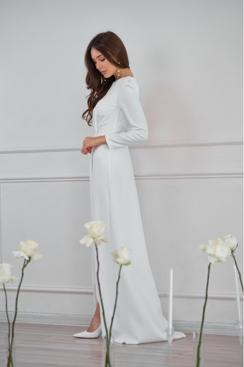 Красивое платье невесты в актуальном стиле минимализм. Модный вырез горловины "раскол" зрительно удл..