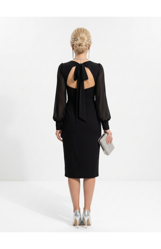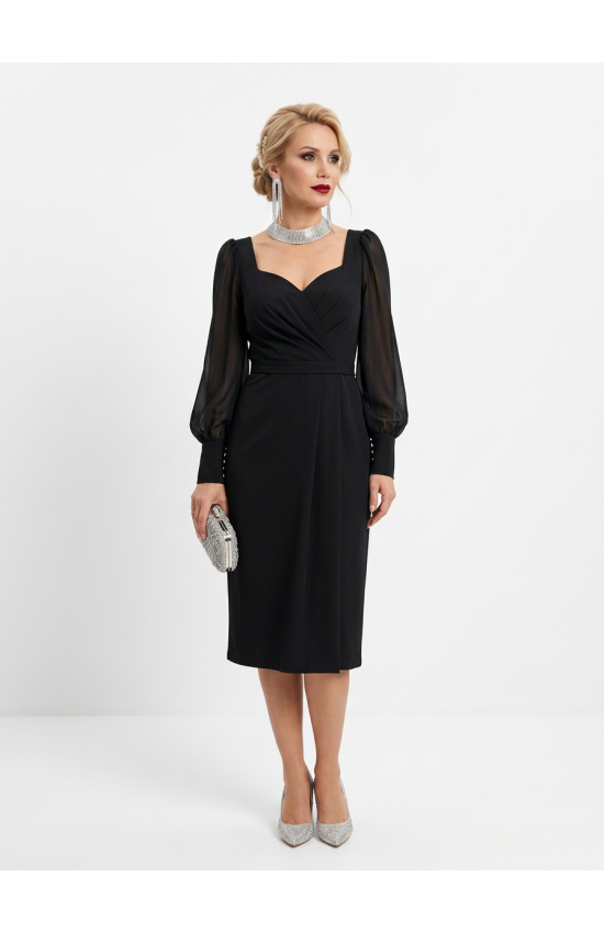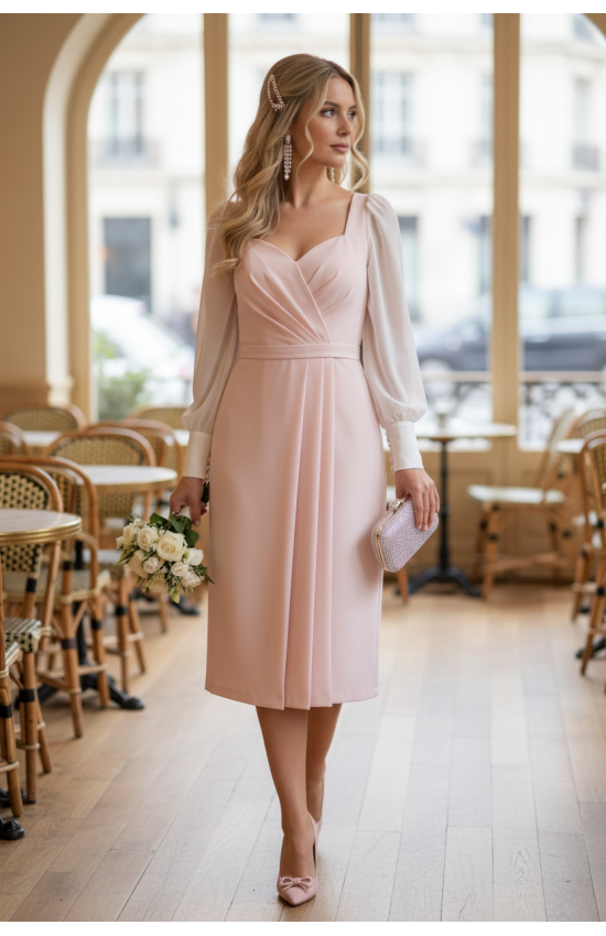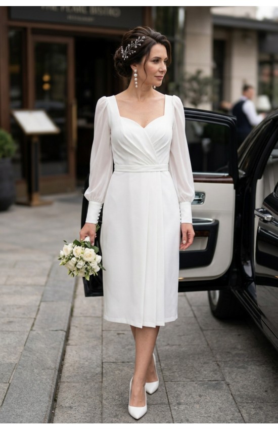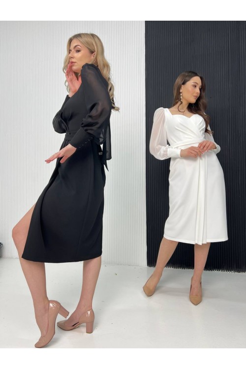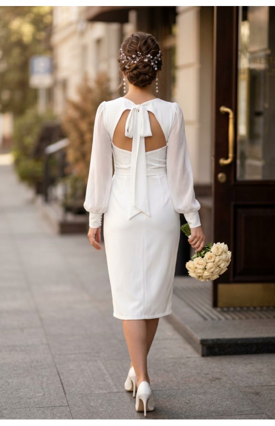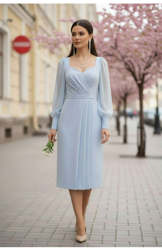 Платье миди на любое торжественное мероприятие или на роспись для невесты. Ткань: платьевая "барби", рукава шифоновые. Идеальная посадка на фигуру.