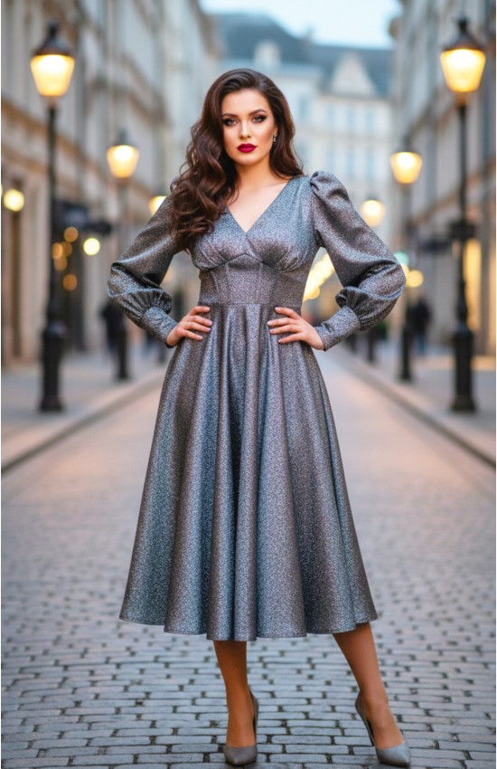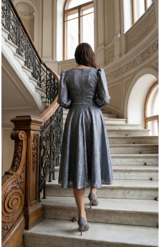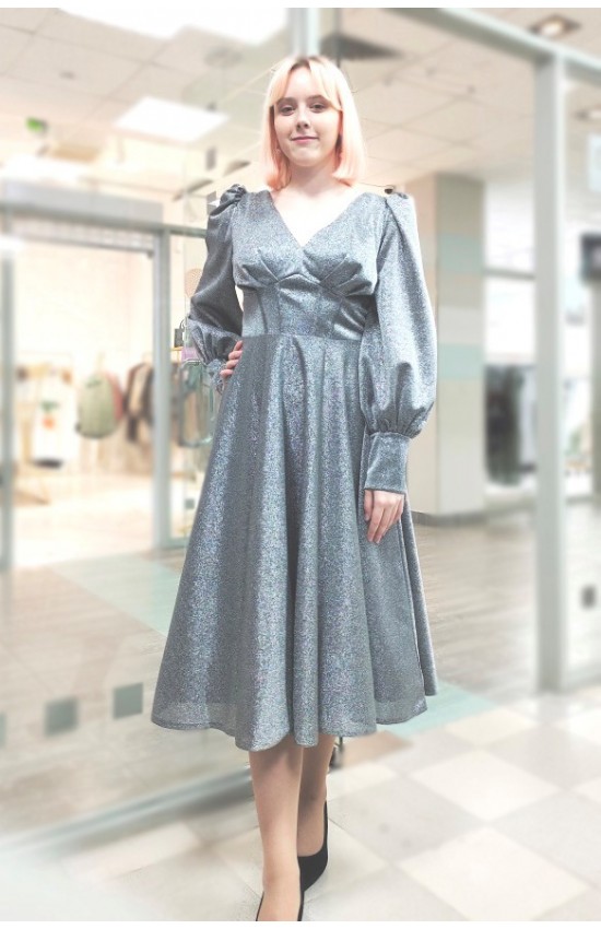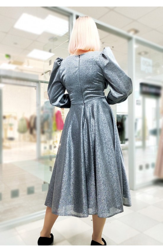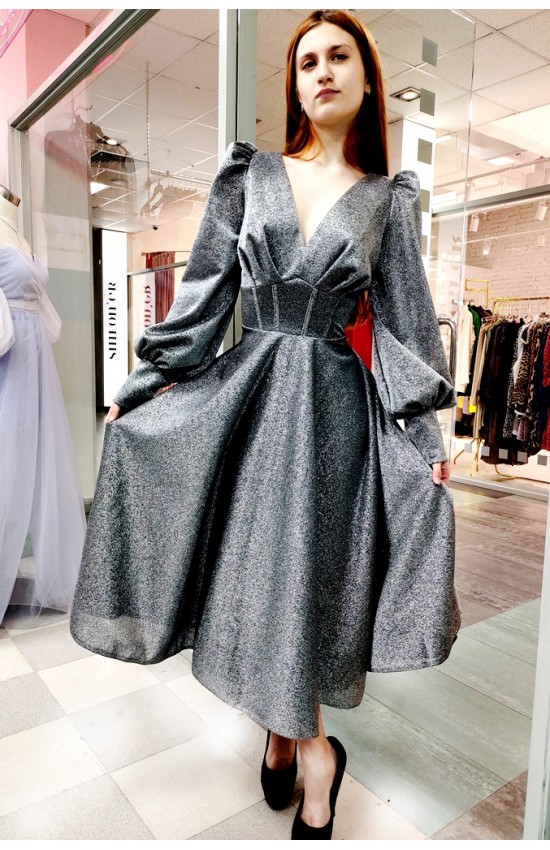 Платье на выход из блестящей мягкой и приятной ткани. Блеск не осыпается. Элегантный стальной цвет.
